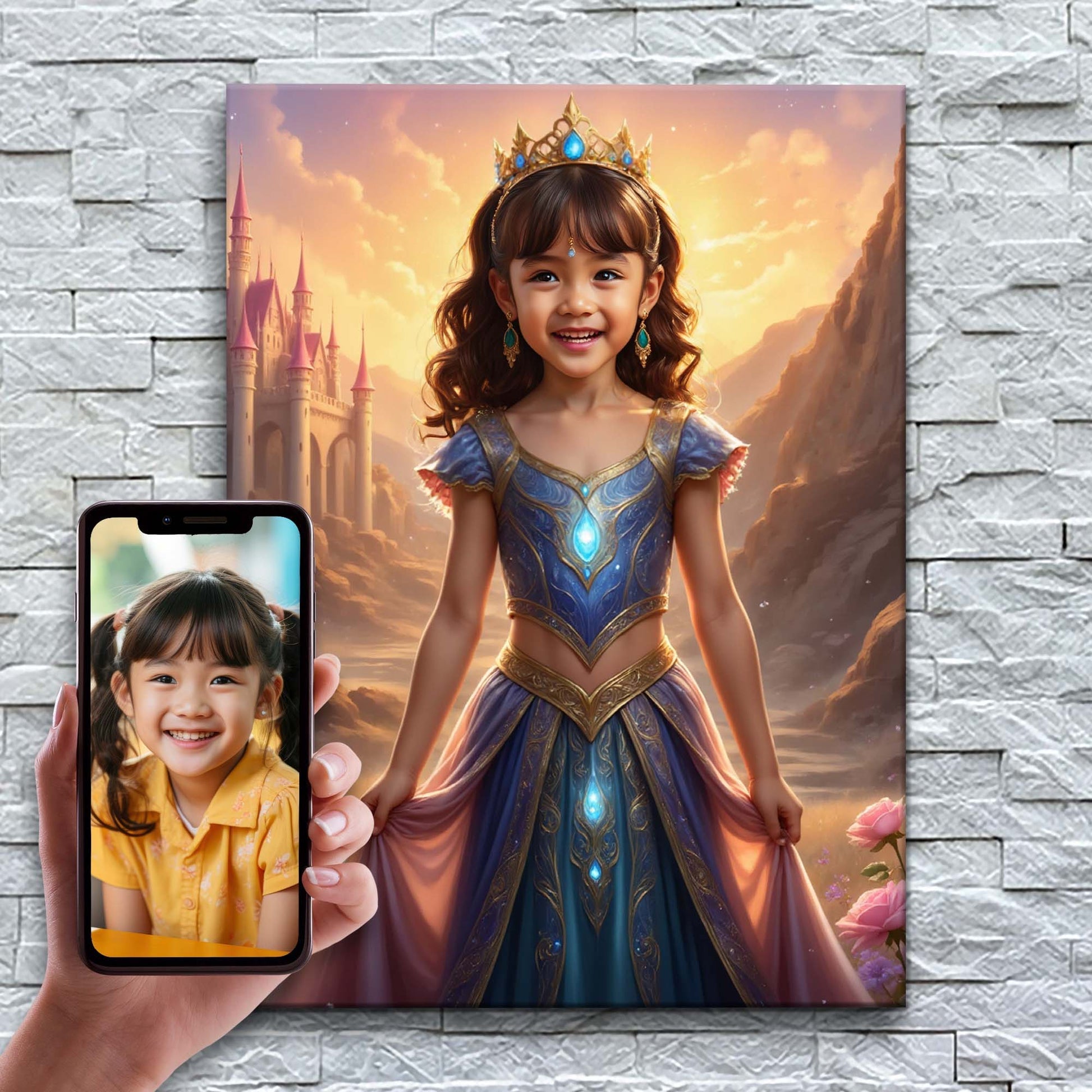 İnanılmaz yapay zekamız her portreyi onlar için özel olarak hazırlıyor, ardından güzel bir kanvas üzerine basıyoruz. Çocuklarını yıldız gibi hissettiren 10.000'den fazla aileye katılın!