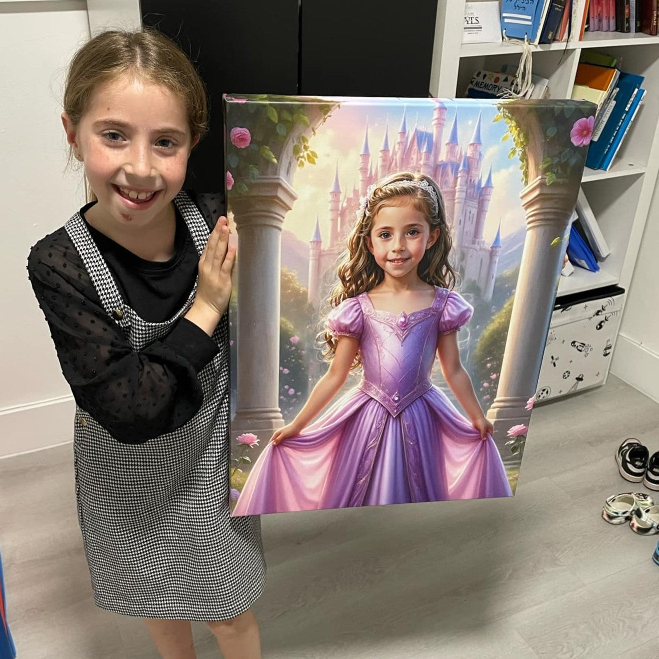 İnanılmaz yapay zekamız her portreyi onlar için özel olarak hazırlıyor, ardından güzel bir kanvas üzerine basıyoruz. Çocuklarını yıldız gibi hissettiren 10.000'den fazla aileye katılın!