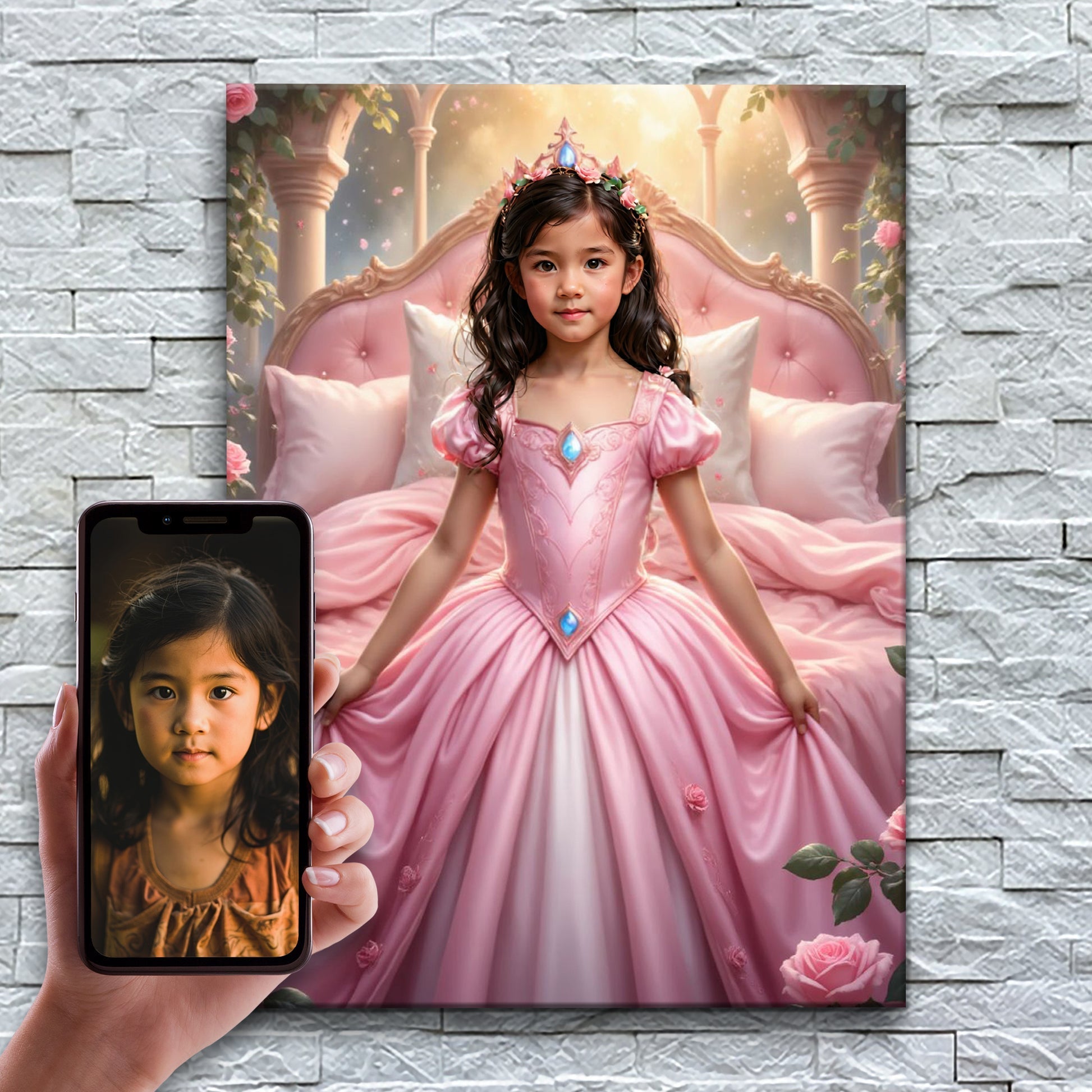 İnanılmaz yapay zekamız her portreyi onlar için özel olarak hazırlıyor, ardından güzel bir kanvas üzerine basıyoruz. Çocuklarını yıldız gibi hissettiren 10.000'den fazla aileye katılın!